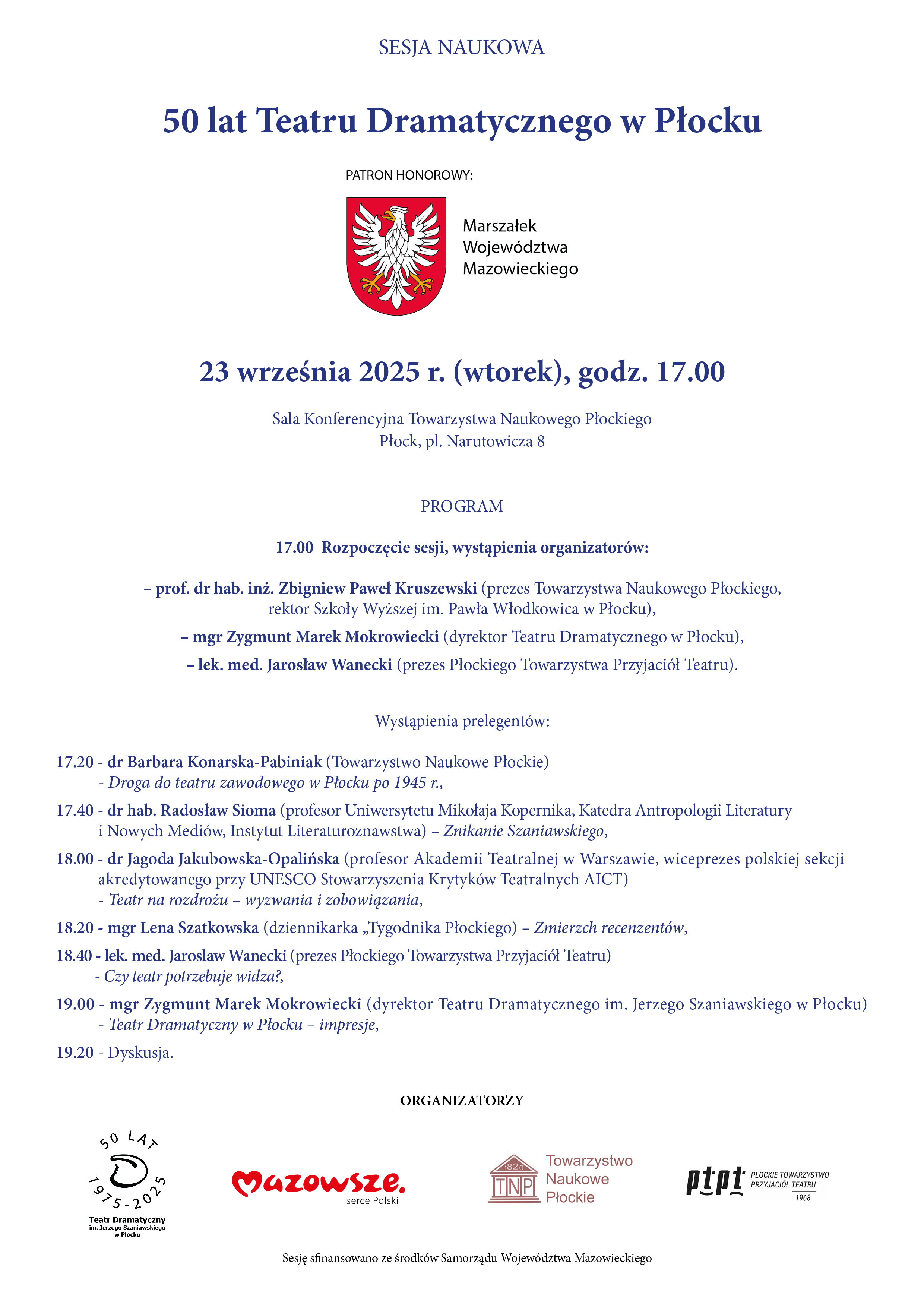 50 lat Teatru Dramatycznego w Płocku - sesja naukowa (23.09.2025)