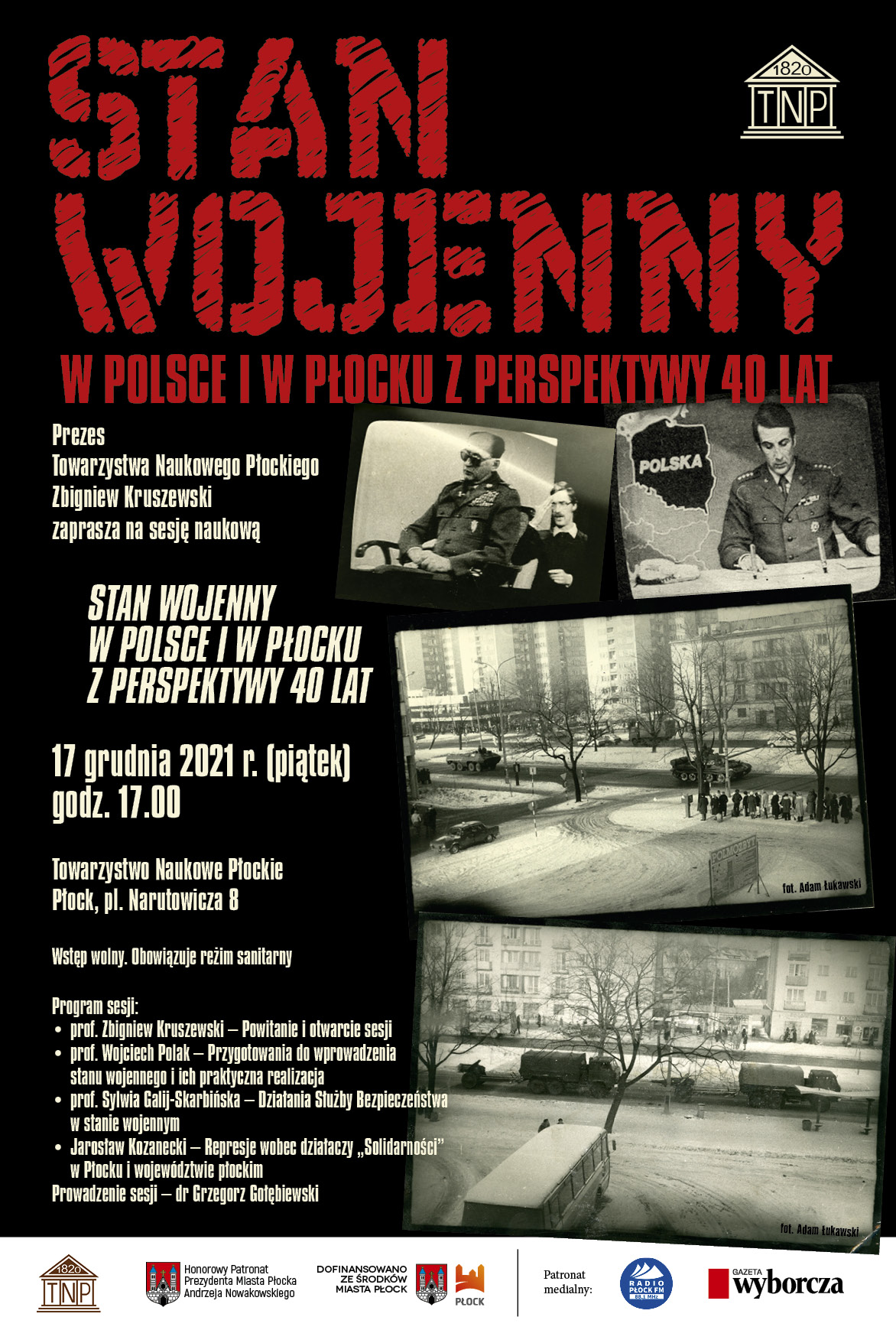 ZAPROSZENIE - Sesja naukowa "Stan wojenny w Polsce i w Płocku z perspektywy 40 lat" (17.12.2021) PLAKAT - Sesja naukowa "Stan wojenny w Polsce i w Płocku z perspektywy 40 lat" (17.12.2021)