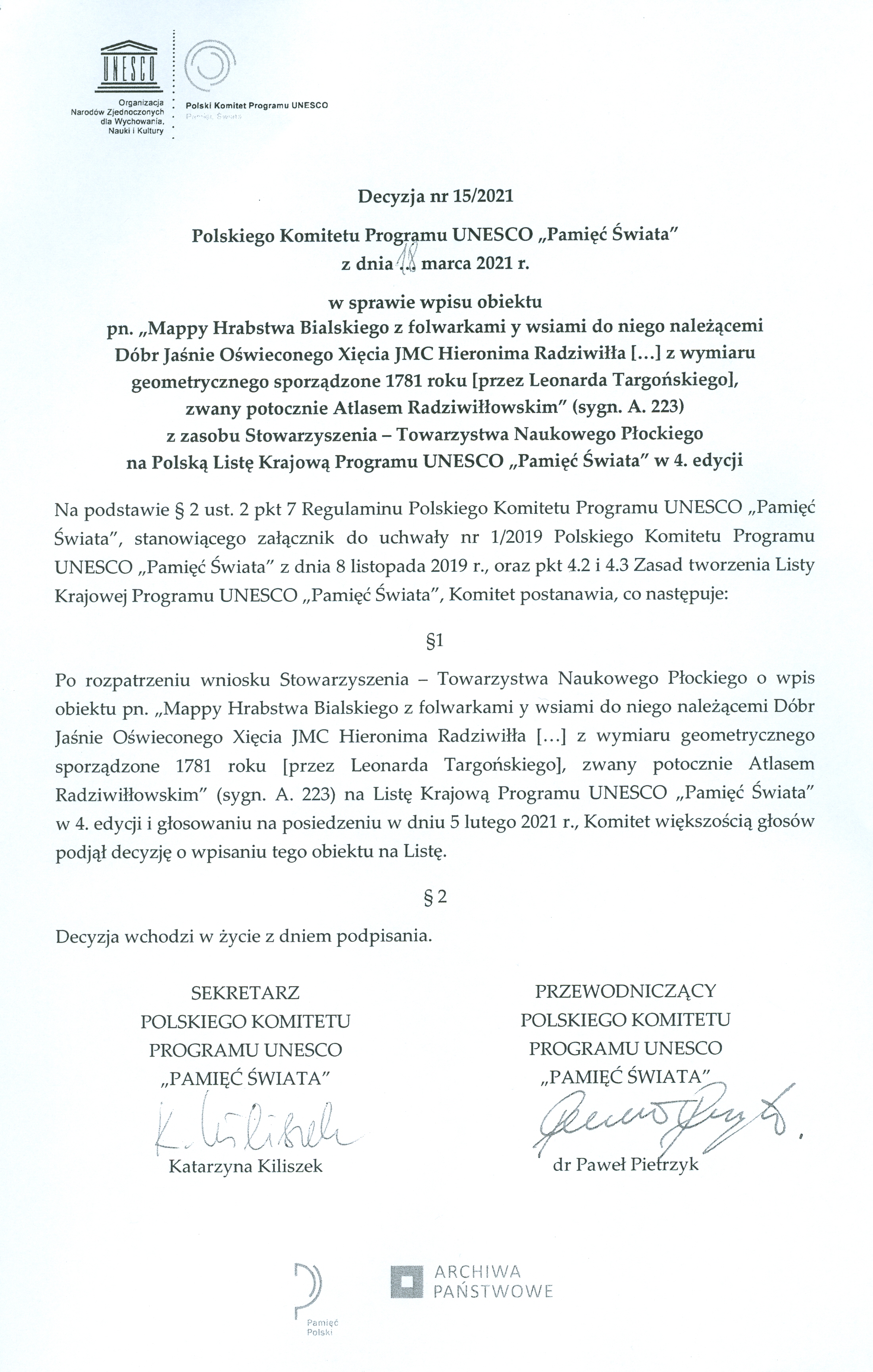 Atlas Radziwiłłowski ze zbiorów TNP na Liście Krajowej Programu UNESCO "Pamięć Świata"
